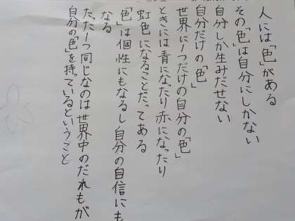 と,いうことで6年生は“人権”をテーマにした詩を書きました。「個性」「友だち」「笑顔」「しあわせ」など心温まるワードを出して,それらを参考に詩を書きました。