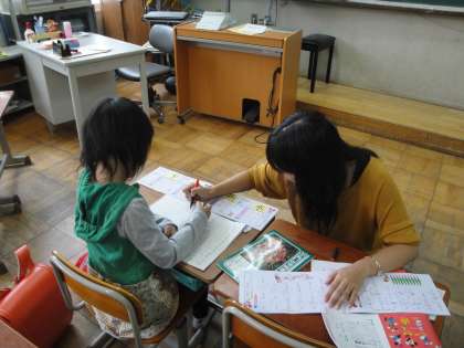 1年生にとっては,初めての土曜学習です。分からない問題は,先生に聞き,あきらめずに学習できていました。