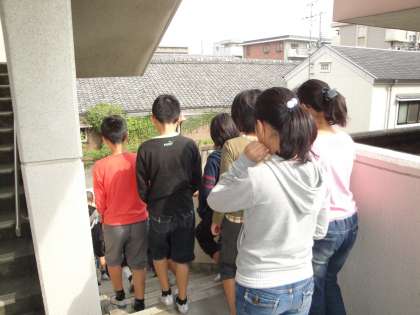 事前に学習した地震発生時の対応を行い,速やかに運動場へ避難しました。