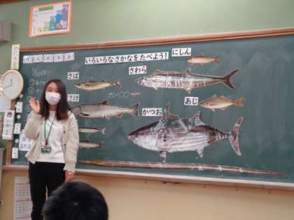 栄養教諭の岩武先生の「食の指導」の学習がありました。