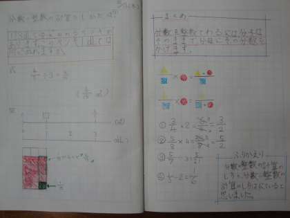 分数÷整数の計算の仕方を,面積図をもとに考えました。