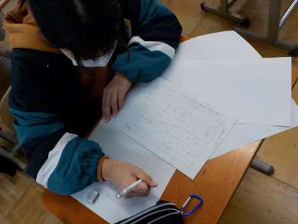 卒業制作,卒業文集に取り組んでいる6年生たち。自分のすべき課題と真剣に向き合っています。