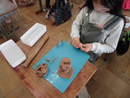 ねん土を使って『どんなまちがあるといいか』『どんな物があるといいか』をイメージを膨らませて作品作りに挑戦しました。