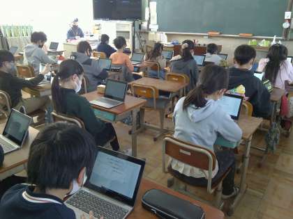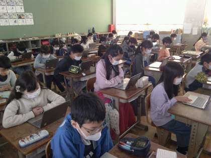 音楽の聞き取りテストをしました。解答は,ギガ端末で行いました。