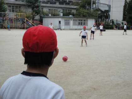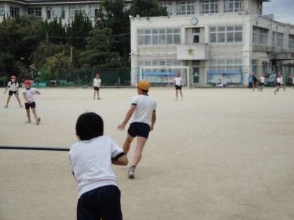 球技クラブの活動の様子です。キックベースを楽しみました。