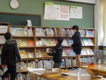 図書室の前を通ると,本棚の上や隙間をきれいに拭いている6年生がいました。