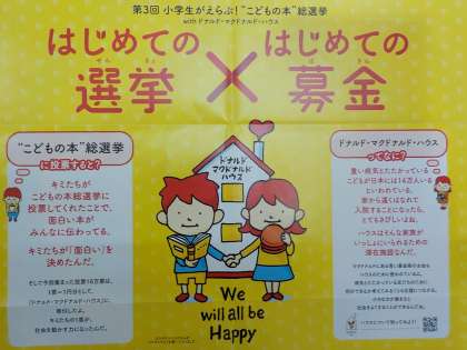 1学期に全校で取り組んだ「こどもの本 総選挙 withドナルド・マクドナルド・ハウス」の結果が届きました。