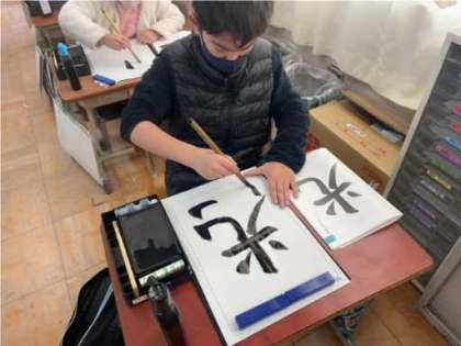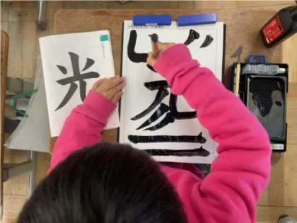 学年のまとめにもなるので,今まで学習した「とめ」「はね」「はらい」「おれ」「まげ」「はね」などが含まれる『光』という字を書きました。