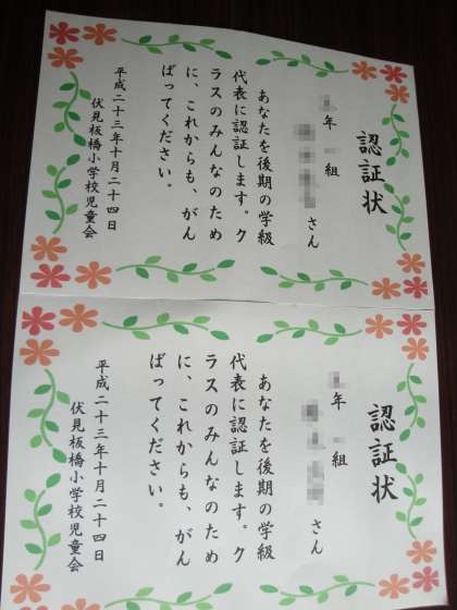 児童朝会終了後,担任の先生から後期学級代表の児童に認証状が手渡されました。前期学級代表に負けないぐらいの大活躍を期待しています。
