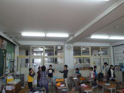花背山の家のキャンプファイヤーの活動で,スタンツ(各学級の出し物)をします。それぞれの学級で,休み時間などを使って,練習を行っています。