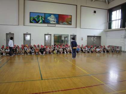 入所式の練習や並び方の確認をしました。リーダーの号令のもと,みんなで気持ちを一つにして,頑張れていました。