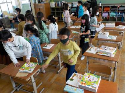 2年生は,今日新しい教科書を担任の先生から受け取りました。
