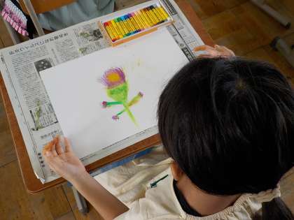 そして,いよいよパスやコンテで描きました。どんな作品が出来上がったのでしょうか。乞うご期待!