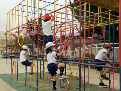 2年生は,体育科で総合遊具を使った学習に取り組んでいます。