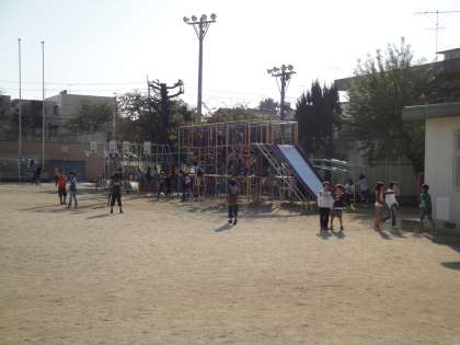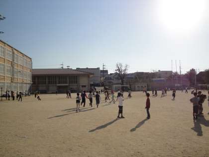 朝休みの運動場の様子です。5年生が代休日のため,運動場で遊んでいる児童は少なめですが,ドッジボールや追いかけっこ,総合遊具など元気に遊んでいました。