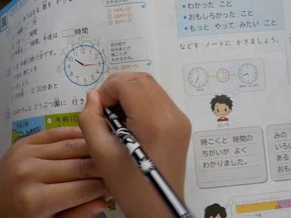 「〜時間後は?」「30分前の時刻は?」といった問題には苦戦していますが,それでも一生懸命頑張って,学習に取り組んでいます。