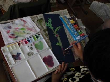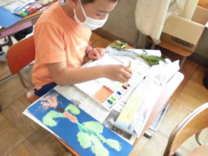 細かくかく子,ダイナミックにえがく子それぞれの作品ができて教室の中も華やかになりました。