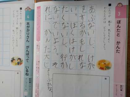 2年生は道徳の時間に「ぽんたとかんた」というお話から“正しい判断をする大切さ”について学習しました。