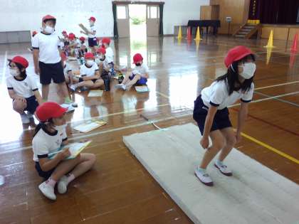 立ち幅跳びと,ソフトボール投げをしました。
