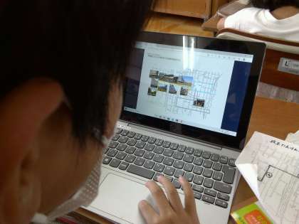 社会科では,校区内探検をして見つけた場所や建物を,ロイロノートを使って地図に乗せてみました。