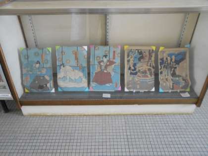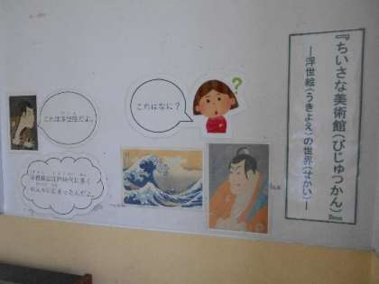 学校運営協議会の皆様が,子どもたちの目に触れる廊下に『小さな美術館』を作ってくれました。展示されているものは校長室に長く眠っていた浮世絵です。