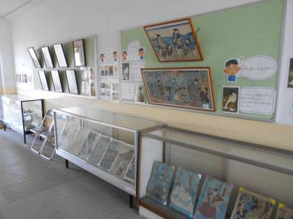長く眠っていたものですから,慎重にケースや額に入れて展示されました。また,子どもたちにもわかりやすく解説文を入れるなど工夫を凝らして『小さな美術館』を完成させていただきました。