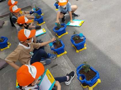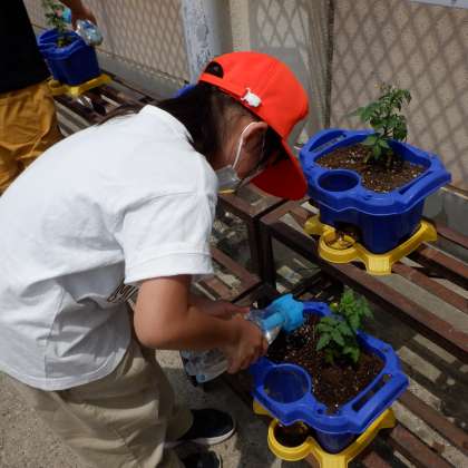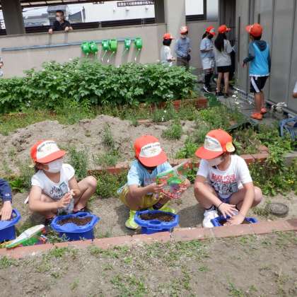 と,いうことで・・2年生は生活科の時間に“ミニトマト”の苗を植えました。これから大事に育て,観察していきます。