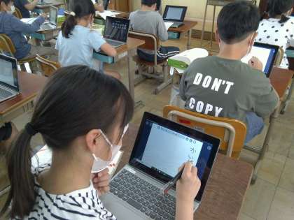 ロイロノートで問題を解きました。
