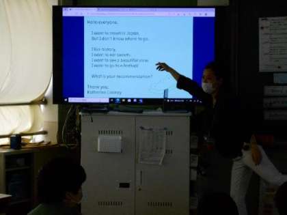 2組は英語の学習をしていました。英語専科の萩原先生が担当です。