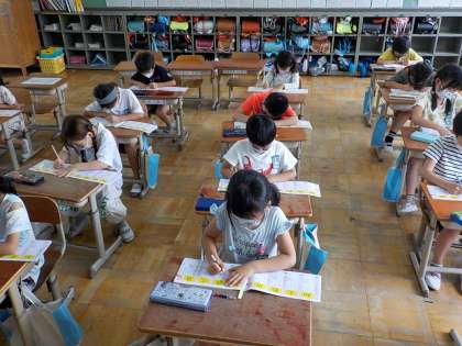 自分の意見や考えをしっかり書く2年生たち。道徳の学習を通して,“すてきな自分”になる方法を見つけていきましょう!