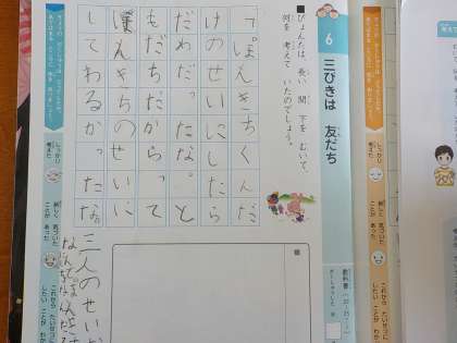 2年生は今日,道徳の時間に「3びきはともだち」というお話から“本当のともだちって?”ということについて考えました。