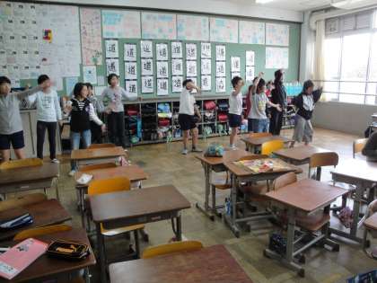 動画に合わせて,子どもたちは,一生懸命に練習できています。