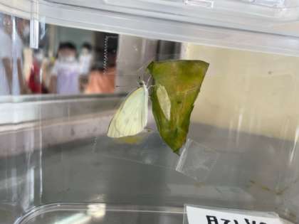 朝学校へ来たら,昨日までさなぎだったのにチョウへと姿を変えていました。