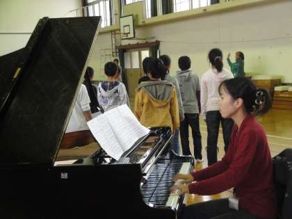 明日の学童大音楽会に向けて,最終リハーサルを行いました。他学年の子どもたちや担任外の先生方が歌声を聴きにくれました。