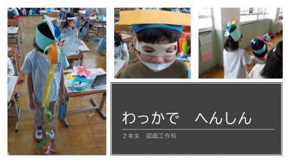 2年生は,図画工作科で「わっかでへんしん」に取り組んできました。