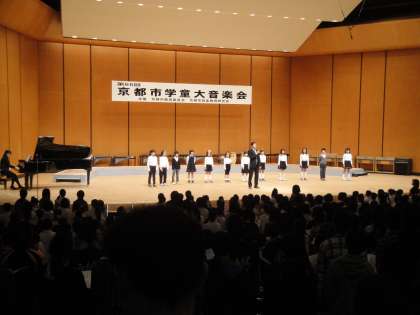 京都市歌を会場の全員で合唱して,他校の合唱を聴きました。