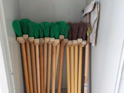ほうきがピシッと揃って並んでいました!!