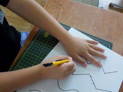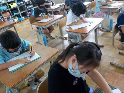 2年生にとって,人生で初めて使う人もいるカッターナイフ・・。そこで,「カッターナイフ名人になろう」というめあてで使い方やルールについて学習しました。
