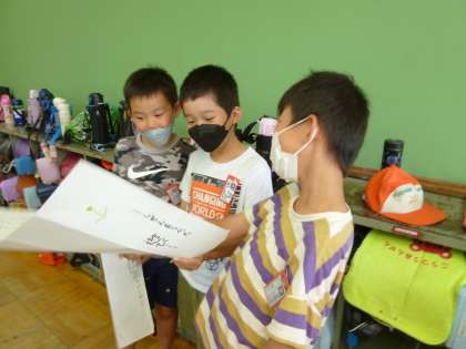 自分で調べた遊びを「遊びのとびら」に書いて交流しています。