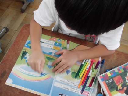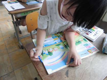 いろいろな国の虹の書き方を見たり,発音の練習をした後,