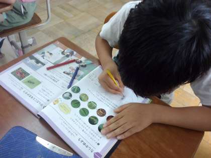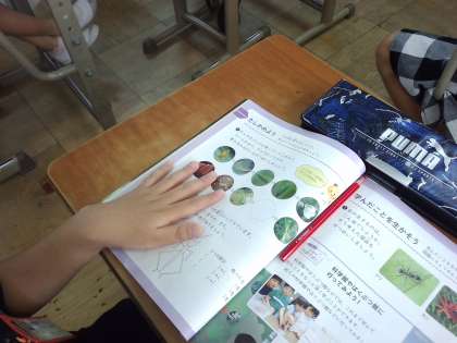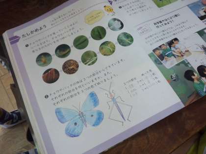 教科書にある学習のページ『たしかめよう』を使って,昆虫のつくりのまとめをしました。