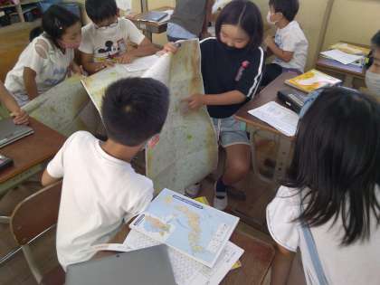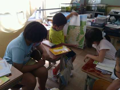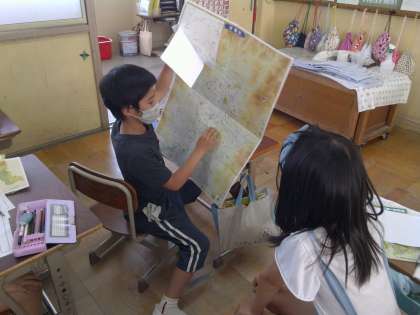 見たことを,校区と比べてどこが同じでどこが違うのか,地図を指し示しながら説明しました。