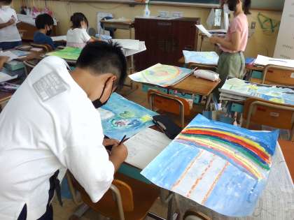 その中でも,自分のお気に入りをみつけ,どこがすてきなのか,絵を見て感じたことをできるだけ伝わるように表現して書きました。