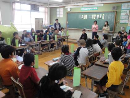 後期学級代表が勢ぞろいし,自己紹介を行いました。また,先生に助言をもらいながら,来週の児童朝会の発表内容を共通理解しました。