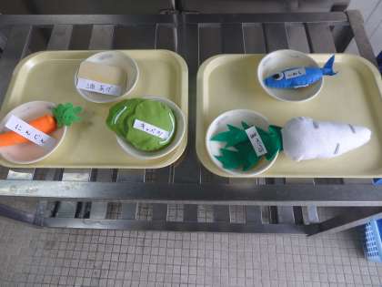 「いわし」に多くふくまれる栄養素は,カルシウム・ビタミンD(骨や歯をつくる),DHA(脳のはたらきをよくする,EPA(血液をさらさらにする)です。よくかんで食べましょうね。