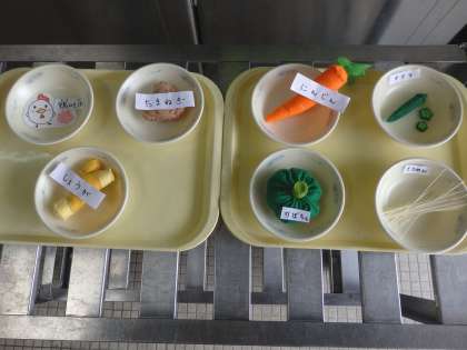「七夕そうめん」は,天の川に見立てた「そうめん」と星に見立てた「オクラ」を入れて作りました。星形の「しあわせにんじん」が入っていた人もいましたね。