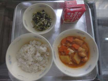 今日の給食のおかずは「きりぼしだいこんのいためナムル」と「タッカルビ」でした。