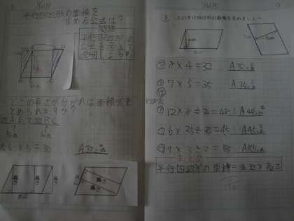 三角形や四角形の公式をもとにして,平行四辺形の公式を考えました。