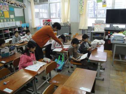 3・4年生の学習の様子です。先生に分からないところを質問する姿が見られました。