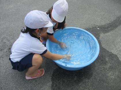 しました。容器に水を入れて水遊びを楽しみ